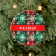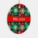 Plaid And Snowflakes Christmas Pattern With Name Ceramic Ornament