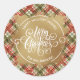 Merry Christmas in chic white lettering on a splash of faux gold foil, these round stickers are personalized with Sweet Holiday Wishes and your family name in chic lettering on a pattern of gold squiggles on a holiday plaid pattern. MATCHING paper plates, napkins and MORE designs in our store.