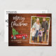 Script de brosse moderne Aquarelle Vintage Camion rouge avec sapin de Noël Joyeux Noël Famille Photo Carte postale - Russe Pays Bois, Bande d'artisanat rouge