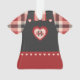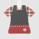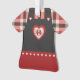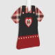 Plaid dress with charcoal grey pinafore, trimmed in red; features heart shaped buttons, lace around the hem, and a large heart design in front, showcasing your loved one's monogram and name. On the back is a small heart "tattoo" in matching pink and red, with the wording, "Christmas 20xx". Personalize with the current year.