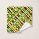 Cette serviette de bain présente une touche moderne sur plaid orange, jaune, vert, noir et blanc.