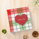 Un classeur établi avec des couleurs de Noël, un motif rouge et vert de plaid et une étiquette de coeur. Customisez le classeur avec votre nom ou votre propre texte entre d'autres options.