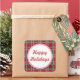 Festive red plaid decorates these holiday stickers. The design is from original art.
