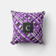 Plaid in Purple, Black & Grey Diagonal Monogram Throw Pillow