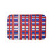 This bath mat sports a modern twist on a traditional plaid in a patriotic mix of red, white and blue.