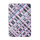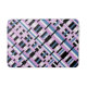 This bath mat features a modern twist on plaid in shades of orchid, slate blue and black and white.