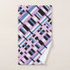This towel set features a modern twist on plaid in shades of orchid, slate blue and black and white.