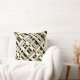 This pillow features a modern twist on plaid in taupe, tan, black, and white.
