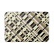 This bath mat features a modern twist on plaid in taupe, tan, black, and white.