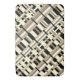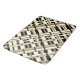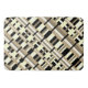 This bath mat features a modern twist on plaid in taupe, tan, black, and white.