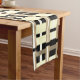 This table runner features a modern twist on plaid in taupe, tan, black, and white.