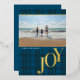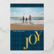 Share JOY with family and friends with this plaid single photo holiday photo card. It features a traditional plaid background and a modern typographic JOY greeting in real foil. Customize real gold foil, silver foil or rose gold foil. Personalize this flat card with your custom name, year, and custom horizontal photo on the front. Choose between a wide array of paper types. Select the rectangular shaped 5" x 7" card or add a dye cut border shape. Matching items are available. Perfect for your fall, autumn, country Christmas or holiday card.