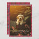 Plaid Modern Script Happiest Holidays Puppy Photo Holiday Card
