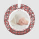 Round acrylic ornament features the year, your baby's name and the words First Christmas and your favourite baby photo surrounded with white leaves, berries and dots on a buffalo plaid background. TIP: Upload a high resolution photo that features your baby in the middle - you can crop to a square before uploading for easy creation. Ornaments make memorable gifts for family and friends or create for yourself. MORE colours and DESIGNS in our store.