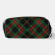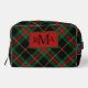 Black Plaid pattern Monogram Dopp Kit in dark gingham reds, black, green with bold monogrammed initials.