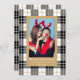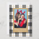 Plaid Pattern Photo Template Personalized flat greetings card from Ricaso - add your own photograph and greetings to this black white and tan pattern card