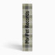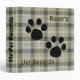 This adorable pet record keeping binder is done in a light khaki plaid with a cute black paw prints, and customizable text, in olive green. Customize the text with anything you want, even add more text fields anywhere on the outside of this binder. Perfect for keeping all your pet records or as a photo album for your pet photos. Makes a great gift for a first time pet owner or someone with multiple pets.