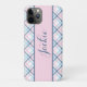 Pretty pastel pink and blue plaid pattern iPhone X Case personalized with your name. Change the name yourself when you order.