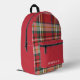 Plaid Rustic Preppy Red Personalized Printed Backpack