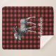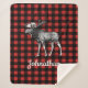 Couverture rustique d'ouatine de sherpa avec un thème rustique d'orignaux plus le plaid rouge et noir de style de bûcheron. Il comporte également le manuscrit blanc au nom de votre choix. Cette couverture fait un cadeau fantastique !