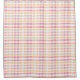Decorative plaid shower curtain in coral and pinks, stylish home decor.