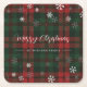 Plaid Snowflakes Pattern Personalized Winter Square Paper Coaster