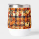 Un design élégant avec des citrouilles, des plaids automnaux et des feuilles colorés.