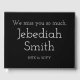 This minimalist funeral or memorial guestbook features the message "We miss you so much,", and the customized name and birth/death dates of the individual who has passed on. It could be used to record fond memories of somebody who has recently passed on. The text is white and the background is black.