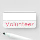 This basic and minimal volunteer reusable dry erase name tag style badge design features the message "Volunteer". It also features an area where a volunteer’s name could be written using a dry-erase marker. A nametag-style badge like this might be worn to indicate that somebody is an authorized volunteer or assistant at an event. [~Z0000359]