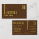 Make a lasting impression with this classic and simple business card design with modern yellow font & fine decor stripes and monogram on a plain dark brown background.