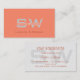 Plain Coral Light Grey Modern Simple with Monogram Business Card