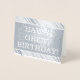 This custom silver foil birthday greeting card design features the message "HAVE A GREAT BIRTHDAY" on the front, along with a customizable message on the inside. It could be given to celebrate somebody’s birthday.