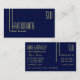 Make a lasting impression with this classic and simple business card design with fine decor light yellow stripes and monogram on a plain dark indigo blue background.