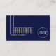 Make a lasting impression with this classic and simple business card design with fine decor light yellow stripes, logo and (employees-) photo on a plain dark indigo blue background.