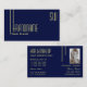 Plain Dark Indigo Blue with Monogram and Photo Business Card