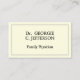 This classy, plain, and professional business card design features a light tan background, and a double-line border. It could be used by a professional such as a family physician, ophthalmologist, medical doctor or rheumatologist. The name, profession and contact details can be personalized.