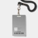 Name Badge featuring a gray colored ombre background, photo, barcode and logo template. Easily customize this badge to your brand. For additional customization easily drop me a message below. I would be more than happy to make your design wishes come true!