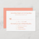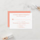 Wedding reply cards with menu / entrée section and line for exact guest count. Personalize with names of the couple in the first line, if you wish, and hand write the total number of guests invited for guest to see. This way no extra friends come along! Indicate how you want guests to choose their meals, with numbers or initials, and include two or three selections. Plain white cards with coral orange printed and script text are easy to customize for your RSVP needs. Reverse is solid coral colour.