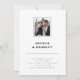 Minimalist wedding invitation in a simple typography design in dark grey and white. Add a photo of the happy couple and their names in a bold font and details in a thin modern font. A clean look for your wedding.