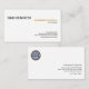 A white cover is accentuated by a faux gold line at the top of the card. Just below the gold line is the job title with the contact details near the base. At the top left corner lies your prestigious name.