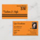 Plain Orange Black Stripes with Monogram and Photo Business Card