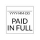 This rubber stamp design features the message "PAID IN FULL" and a line where a payment date can be written. It could perhaps be used to indicate that a bill or invoice has been paid.