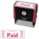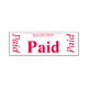 This basic, plain rubber stamp design features the messages "Paid" and a line where a payment date can be written. It could be used to mark an invoice or bill as having been paid in full.