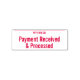This simple, plain rubber stamp design features the messages "Payment Received & Processed" and a line where a payment date can be written. It could be used to mark an invoice or bill as having been paid.