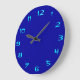 A plain large clock in royal blue, with aqua numerals. This striking clock will be a feature in your home, very bright and sunny.