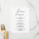 Plain script wedding menu with changeable black text printed on white background