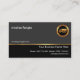 A professional card with a gold demarcation line separating the grey column from the black. At the upper left corner lies the service option "truck for hire" which you can change to suit your business. Over in the opposite direction is the gold truck that you can use. In the black column, there is your prestigious name and job title with the contact details at its right end.