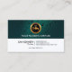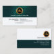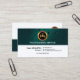 Overleaf, the color theme is reversed. In the white portion above, you have the faux gold logo and business name. If you decide to upload a photo instead of a logo, the dimensions are 1,000 x 1,000 pix. Southwards, in the dark green column, rest your business contacts and a slogan option.