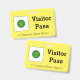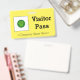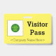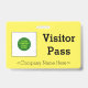This conservative badge design features the message "Visitor Pass", and a customizable company name or other custom message. A badge like this could perhaps be used to indicate that a person is a known and authorized guest or visitor at a business or workplace. [~Z0000307]