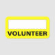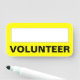 This simple and humble volunteer reusable dry-erase nametag-style badge design features the message "VOLUNTEER". It also features an area where a volunteer’s name could be written using a dry-erase marker. A name tag style badge like this could possibly be worn to identify that somebody is an official volunteer or assistant at an event. [~Z0000359]